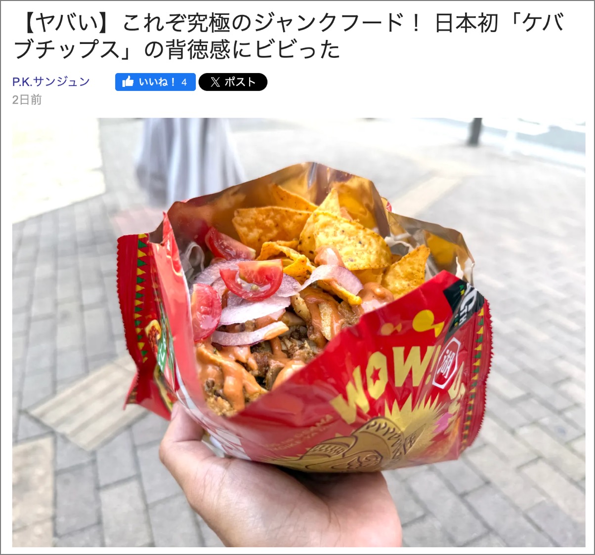 ・その5「【ヤバい】これぞ究極のジャンクフード! 日本初「ケバブチップス」の背徳感にビビった」