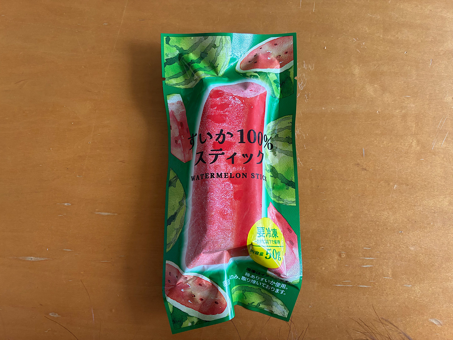 ヘロヘロになりながら近くにあったローソンに避難してきたところ、冷凍食品のケースに「すいか100%スティック」なるものが並んでいるのが目に留まった。