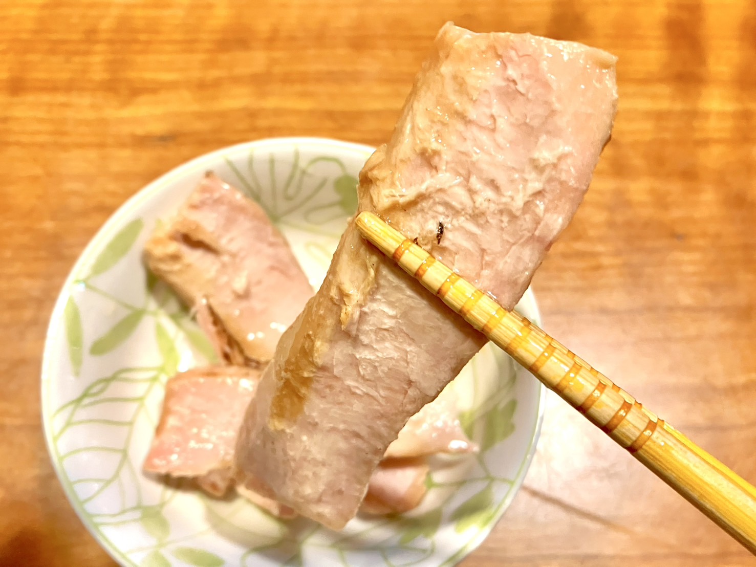 しかしどの部分を食べても硬すぎたりパサパサしていたりということはなく、「さすが高級ツナだな……」と実感した。