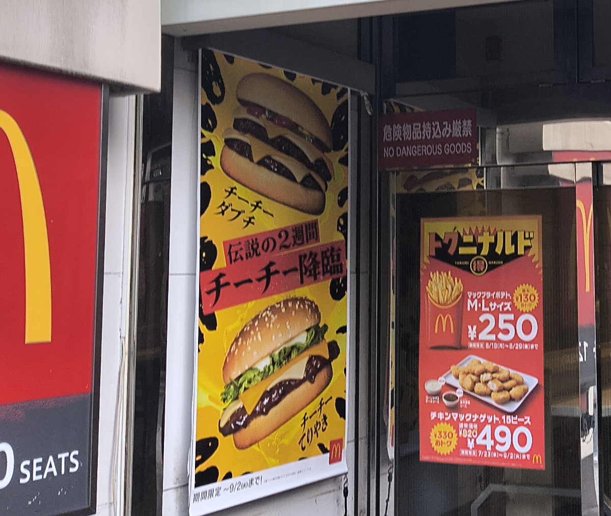 もう秋が近づいてきているというのに、マクドナルドは昨日(8月20日)から「チーチー降臨」と銘打って、チーチーダブチーとチーチーてりやきの販売を開始している。この先、2週間も販売するらしい。月見はいつになるんだ……。