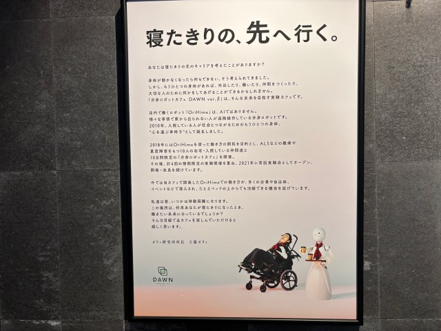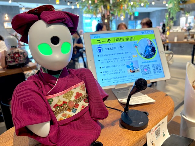 オリィ研究所の『分身ロボットカフェ DAWN ver.β』は、さまざまな理由で外出が困難な人たちが分身ロボット『OriHime』を遠隔操作してサービスを提供しているカフェ。
