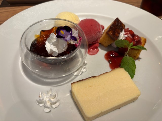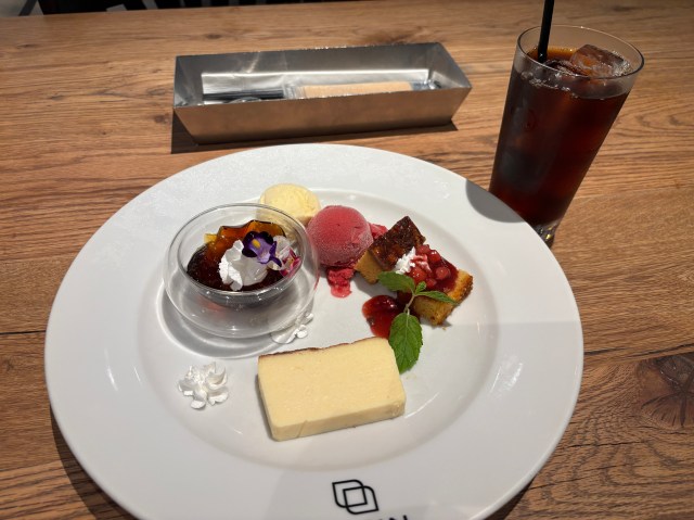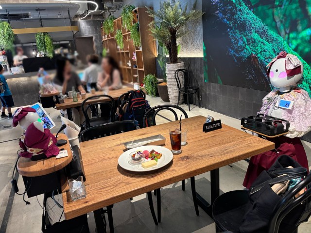 お昼を済ませてたので私が注文したのはスイーツプレートと、アイスコーヒー。お料理は人間のスタッフさんが席まで持ってきてくれるのだが、ドリンクを持ってきてくれたのはOriHime-Dのパイロット・まちゅんさん。