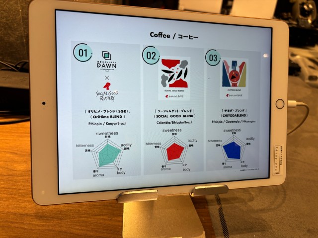 お客さんに3種類の中から豆を選んでもらって、コーヒーを実際に淹れてくれるのだ。ちなみに、この日に選ばれた豆は「ソーシャルグッドブレンド」という、バランスタイプのコーヒー。