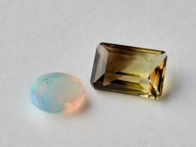 ▼2回目の「プレミアムプラン」では「レモンクォーツ」と「オパール」が届きました。レモンクォーツはバイカラーでカッコイイし、オパールは遊色すごい……!