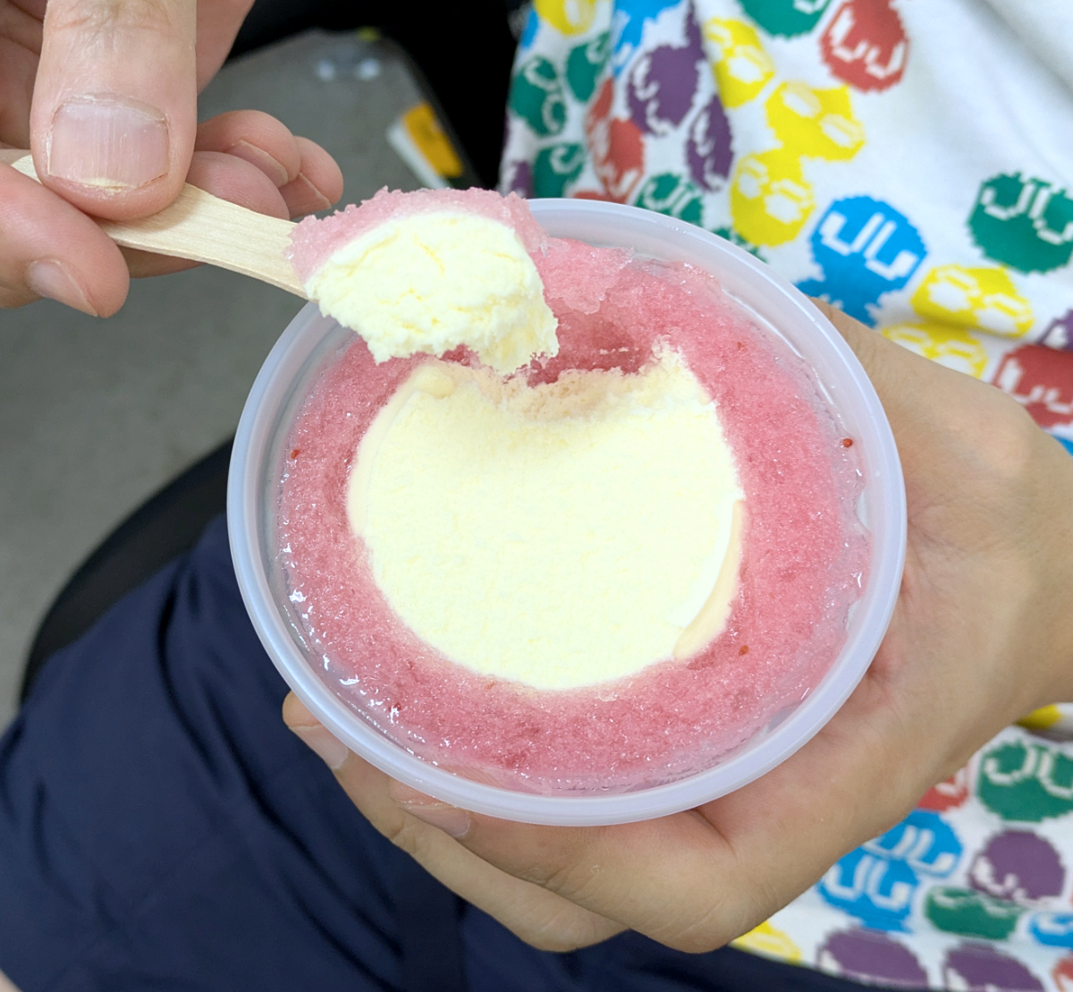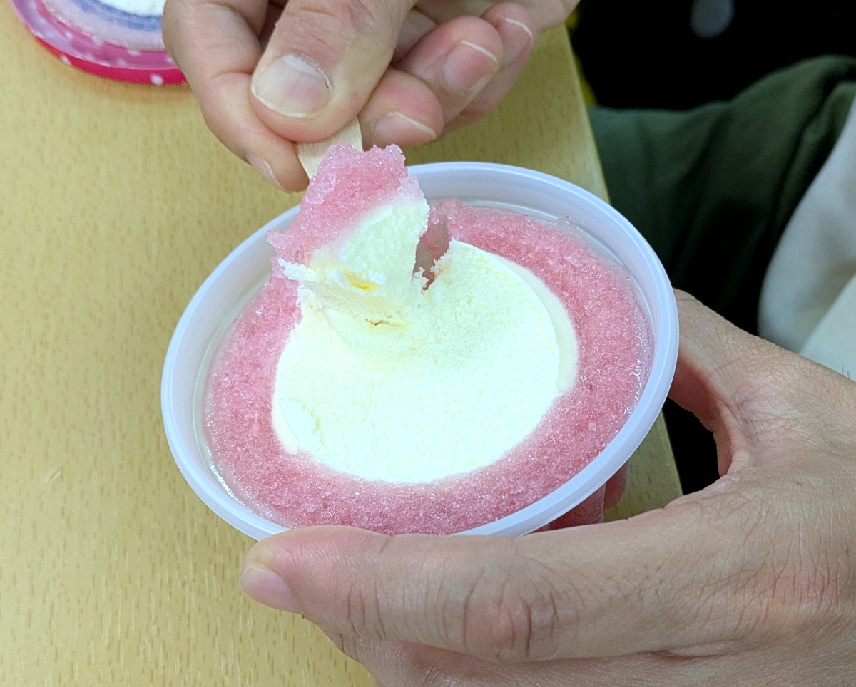 フロート系アイスとは、カップの氷菓の中央にバニラアイスの入ったものだ。おそらく、喫茶店のコーヒーフロートやコーラ―フロートのような感じで作られたものだろう。