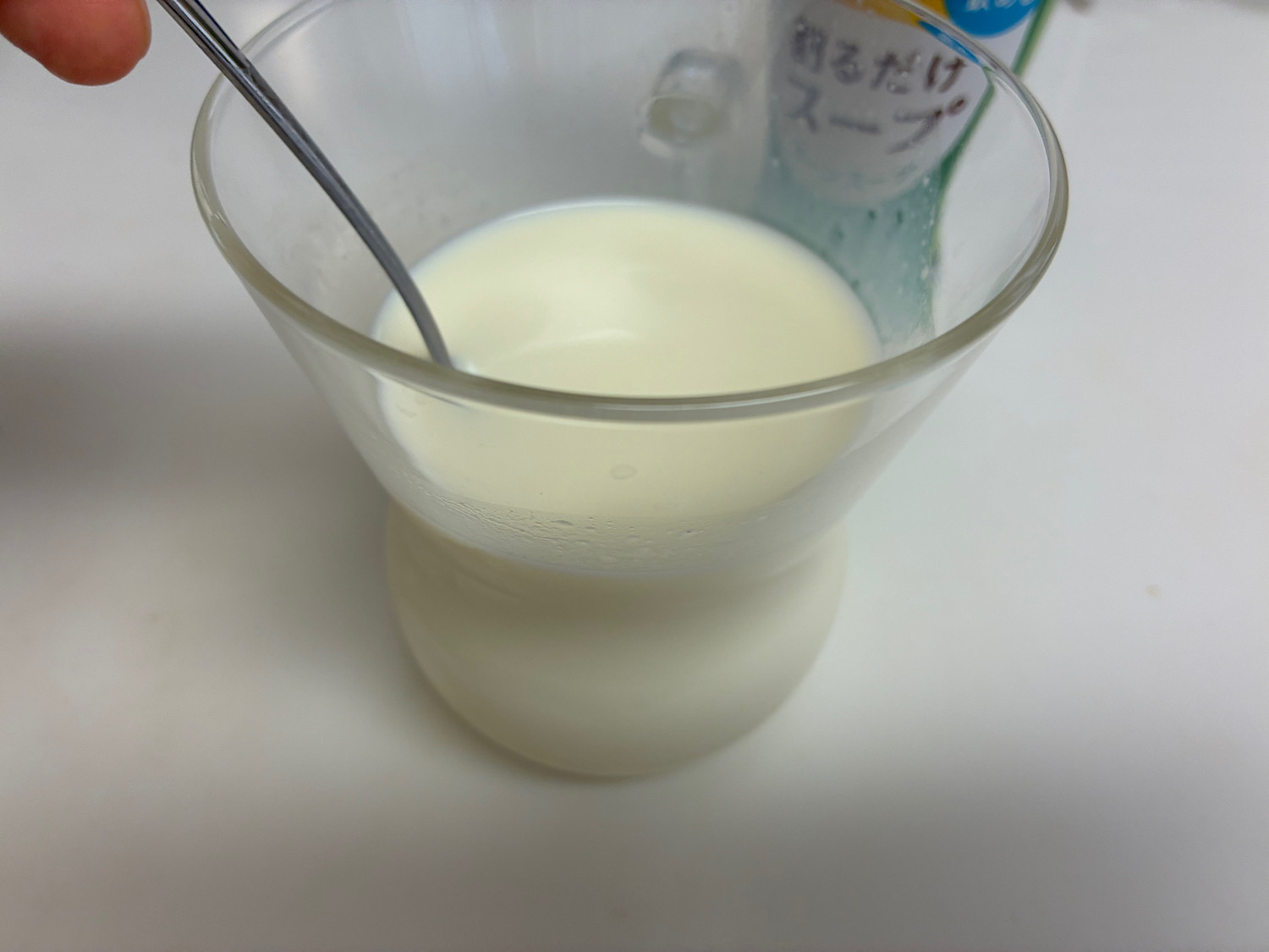今度は冷たい「牛乳」を150ml。合うって公式ページに書いてあったもんで。
