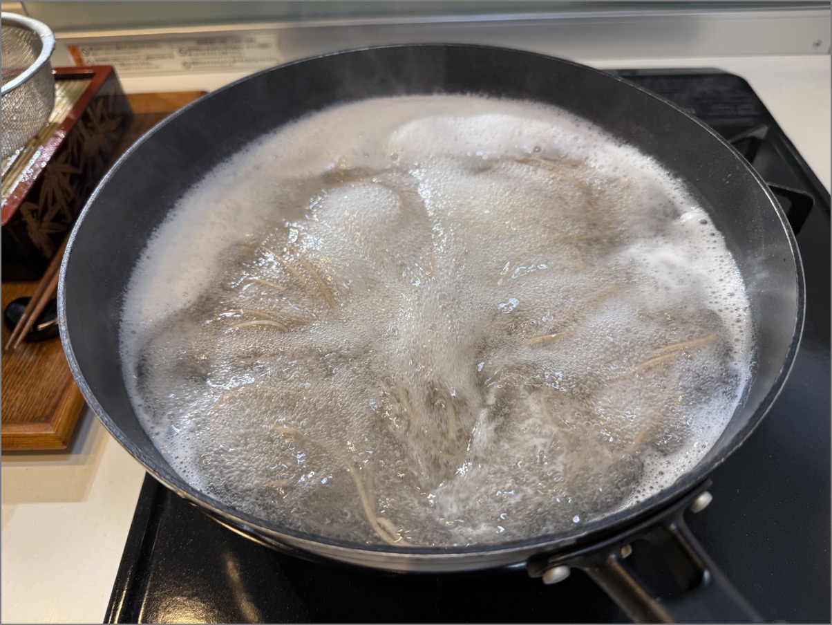 6分ゆでて、冷水(氷水)で冷やしたら──