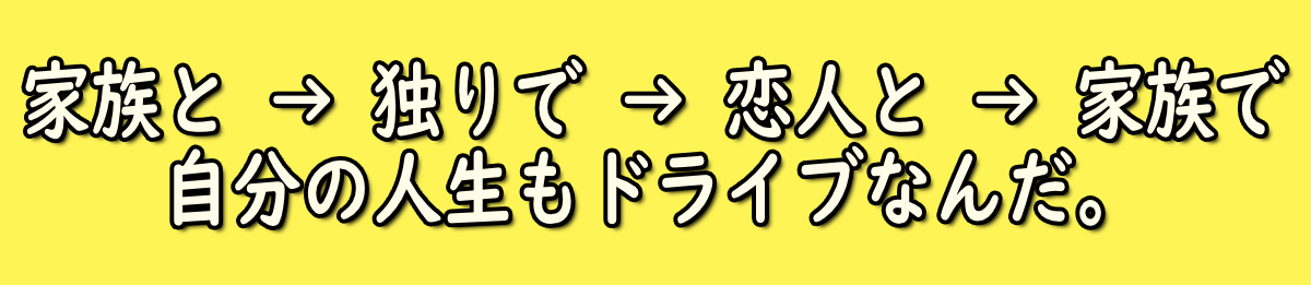 4.「家族と→独りで→恋人と→家族で 自分の人生もドライブなんだ。 」