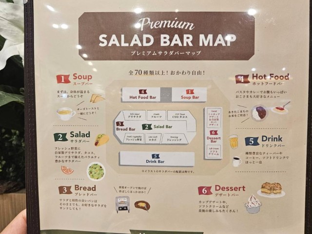 メニュー表にはサラダバーのMAPが記載されている。