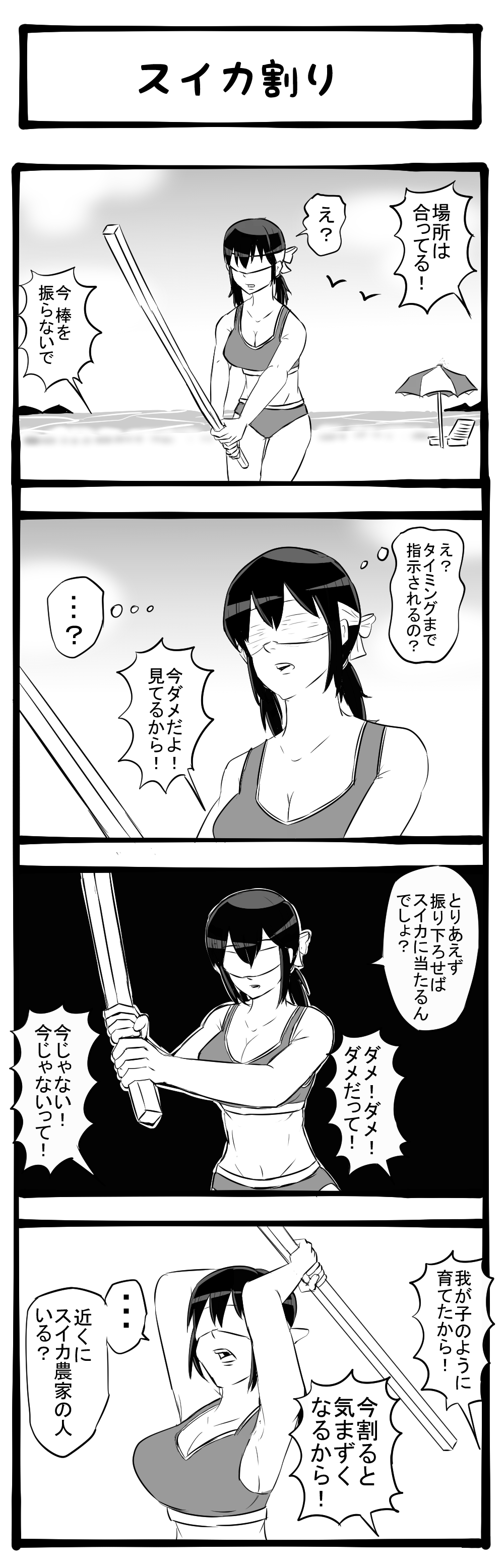 見てない時にいけ! 標的の位置にも周りにも気を遣う夏の行事! 四コマサボタージュBYD第176回「すいか割り」