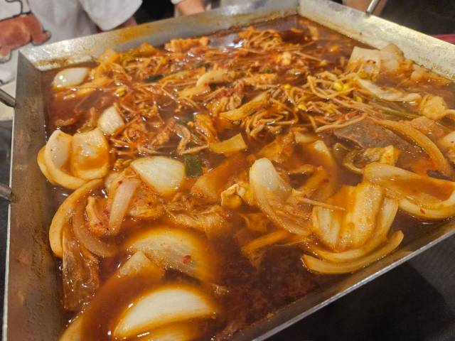 なんというか、鍋料理と焼肉のイイ所を掛け合わせたような料理だな。火が通りすぎないので野菜の食感がとても良く、お肉も固くなっていない。