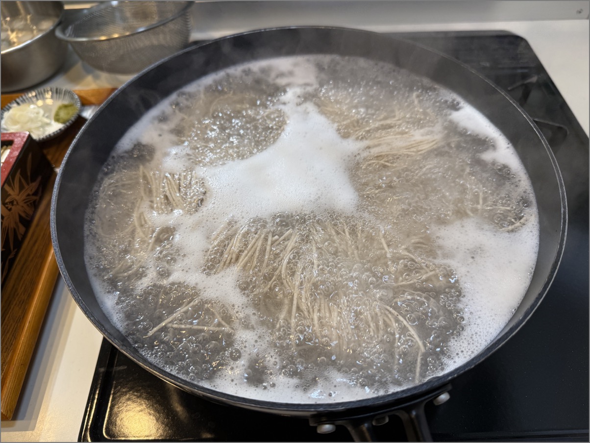 3〜4分ゆでて、冷水(氷水)で冷やしたら──