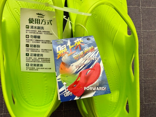 メーカー名は「母子鰐魚」で台湾の街角では古くから親しまれている存在だそうだ。カラーバリエーションが豊富で蛍光カラーなど派手な色合いも多い。私が購入したのもド派手な蛍光緑。ちなみに左右で色違いで履くリピーターもいるそうだ。