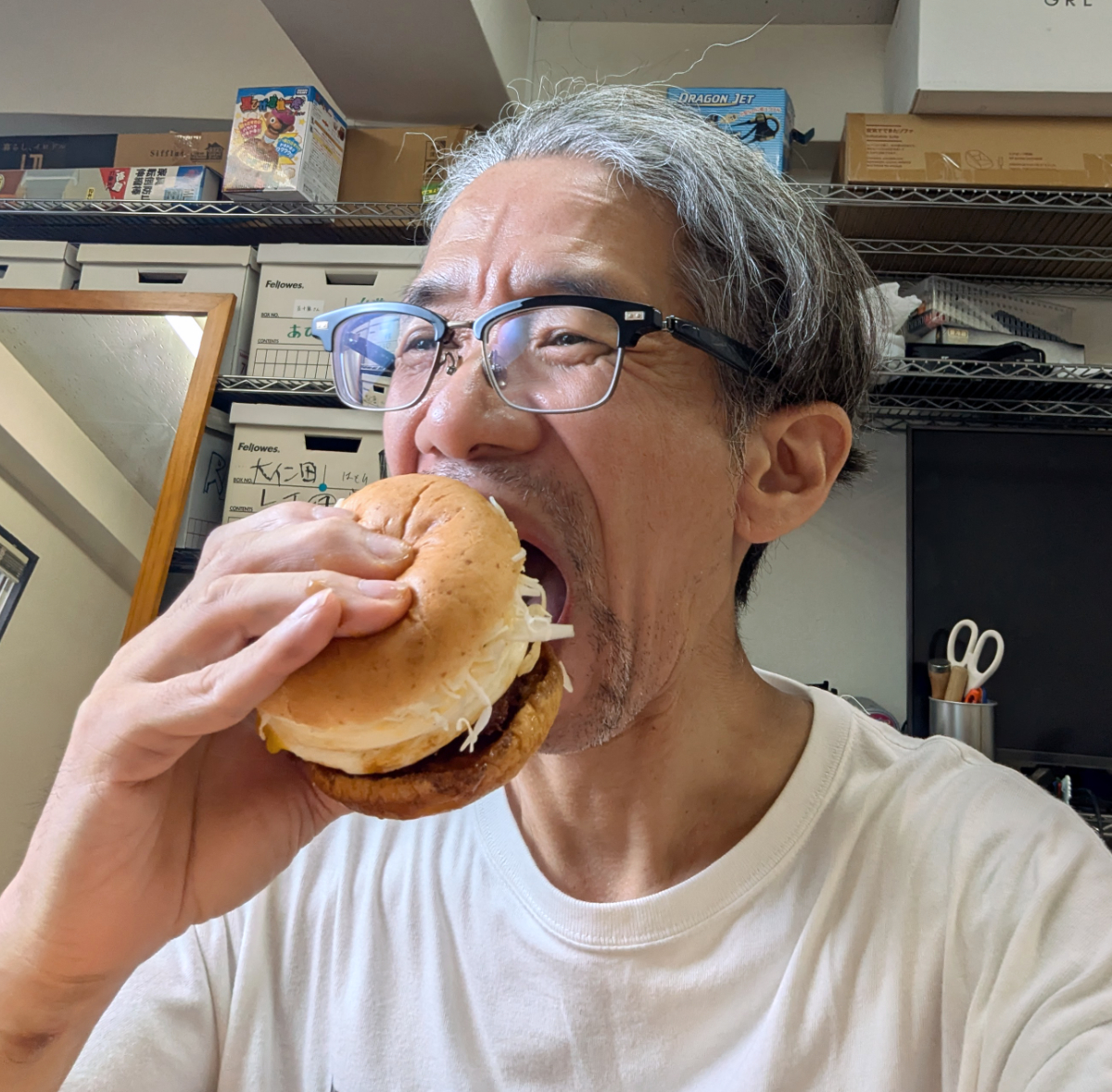アレ? なんか小さくなった? 気のせいかな、モスバーガーぐらいのサイズになった気がするけど。元からこのくらいだったっけな? 以前はバンズ(パン)がもうちょっと大きかった気もするけど。