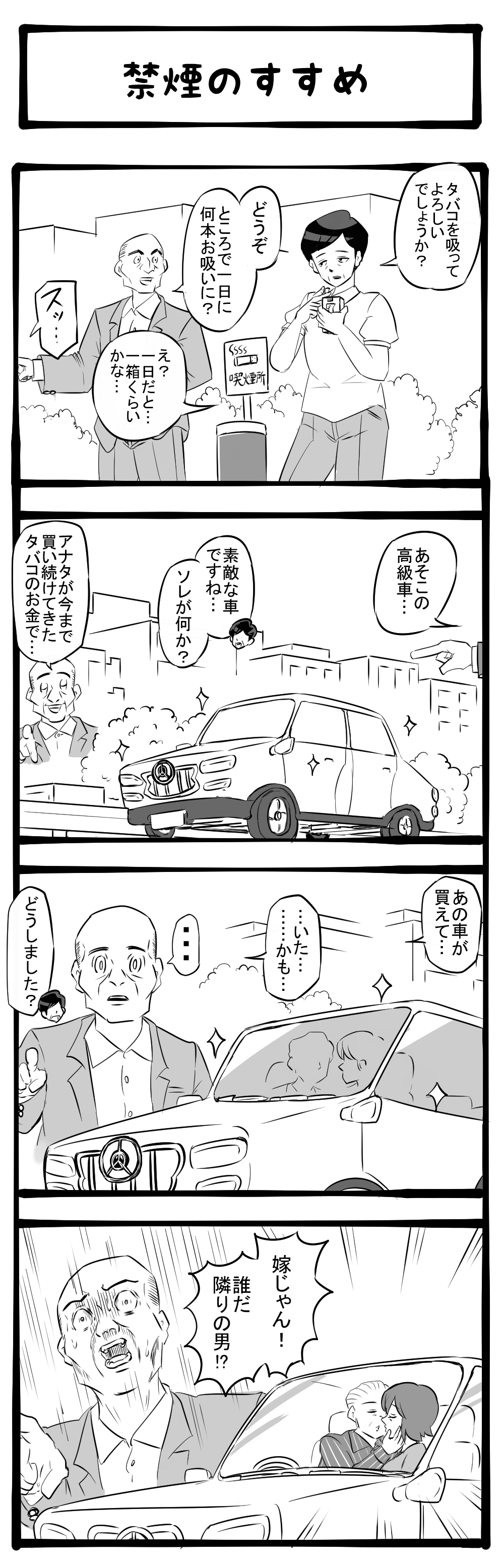 それどころじゃねぇ! お金の大切さを説く紳士! 四コマサボタージュBYD第178回「禁煙のすすめ」
