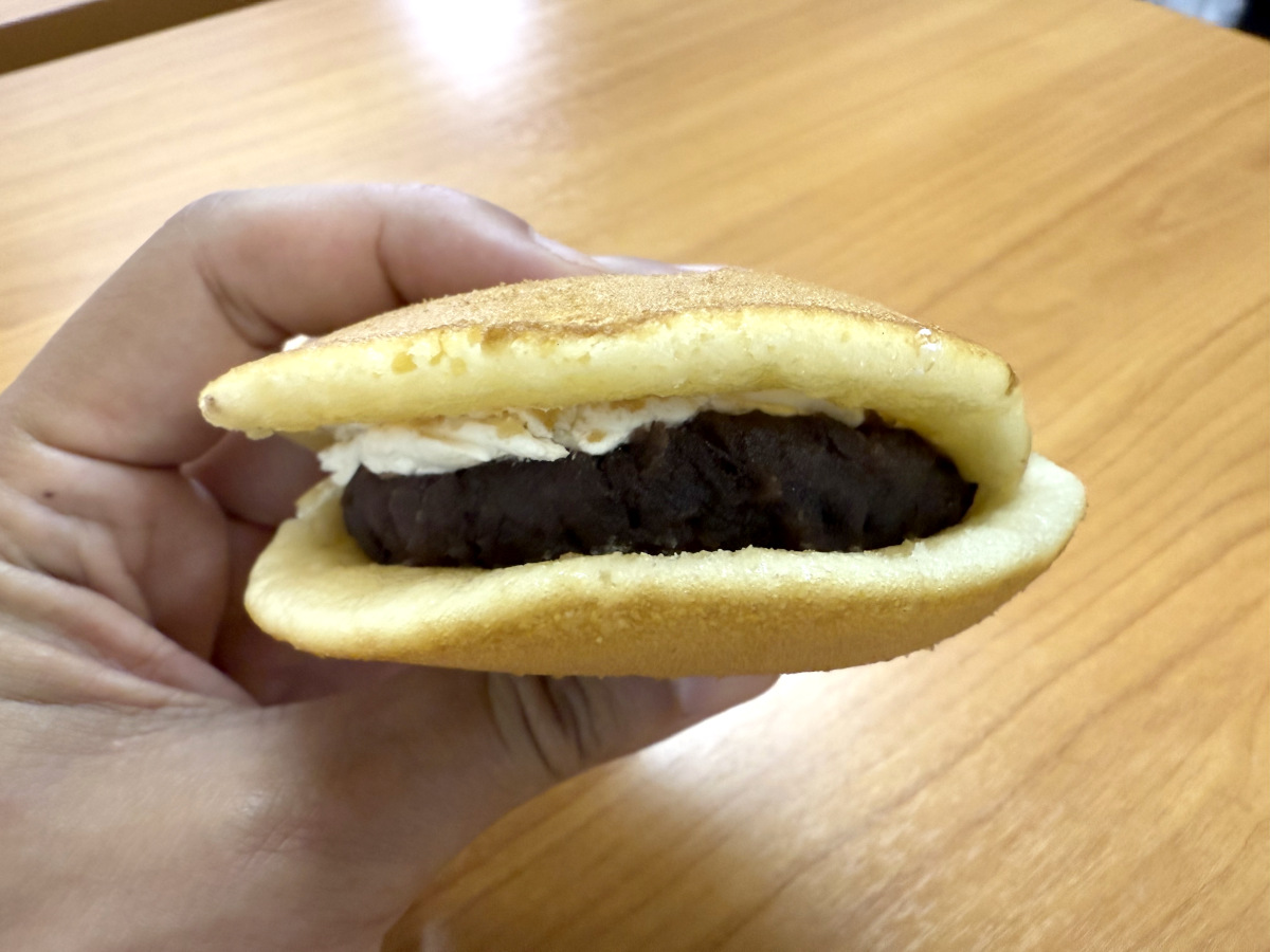 次点で挙げるとすれば粒あんとホイップクリームの量が倍になった「もちっとどら焼き(198円)」もずっしりと食べ応えがあって好印象。皮のもちもち感も相まって、意外とお腹に溜まるボリュームです。