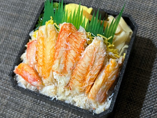 ちなみに商品名は「道産毛がに食べつくし弁当」で、価格は2484円。商品名から考えると使われているのは毛がになんだろうが、毛がにでこれ程ぶっとい身、ある?