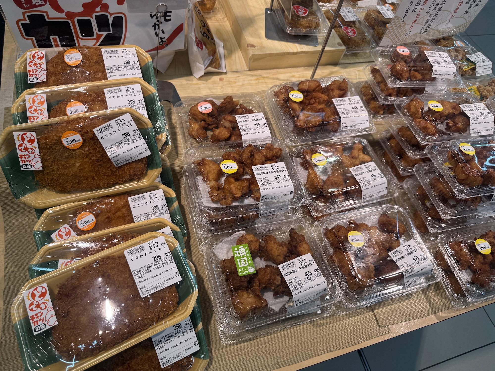 売り場には揚げたてのカラアゲやらトンカツやらが所狭しと陳列されている。おいしそうではあるが、通常営業も甚だしいと言わざるをえない。