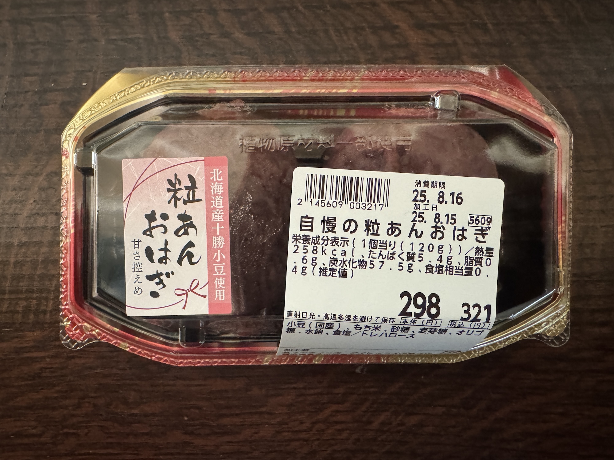 そんなCスーパーでこれまた唯一見つけた “盆っぽいもの” は『おはぎ』(2個入り税込321円)であった。