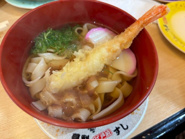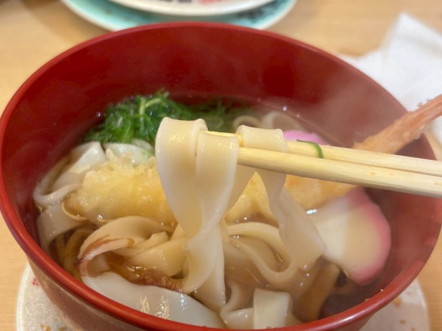 甘めの汁にえび天がのっていて、寿司の合間にちょうどいい。意外かもしれないが、岐阜でもきしめんを提供する店は多いので、私にとってはなじみ深い味だった。