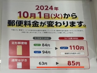 ついでに言うと、封筒(定形郵便物)は25グラムまで84円・50グラムまで94円だったが、同じタイミングで50グラムまで110円になったそうだ。110円って缶ジュースかよ……というのも平成の感覚なのだろう。