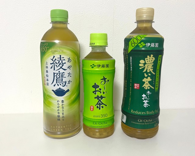 緑茶についても、どれが一番合うのかを確かめるため、コンビニで手に入る定番の3種類を用意した。