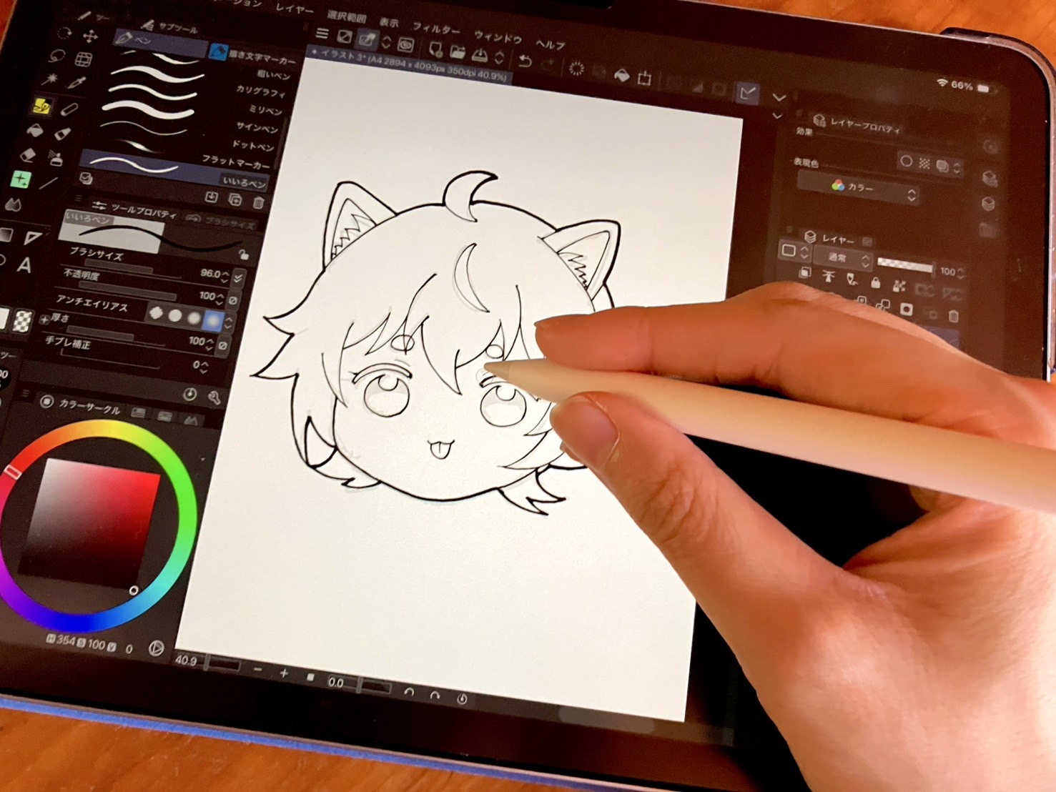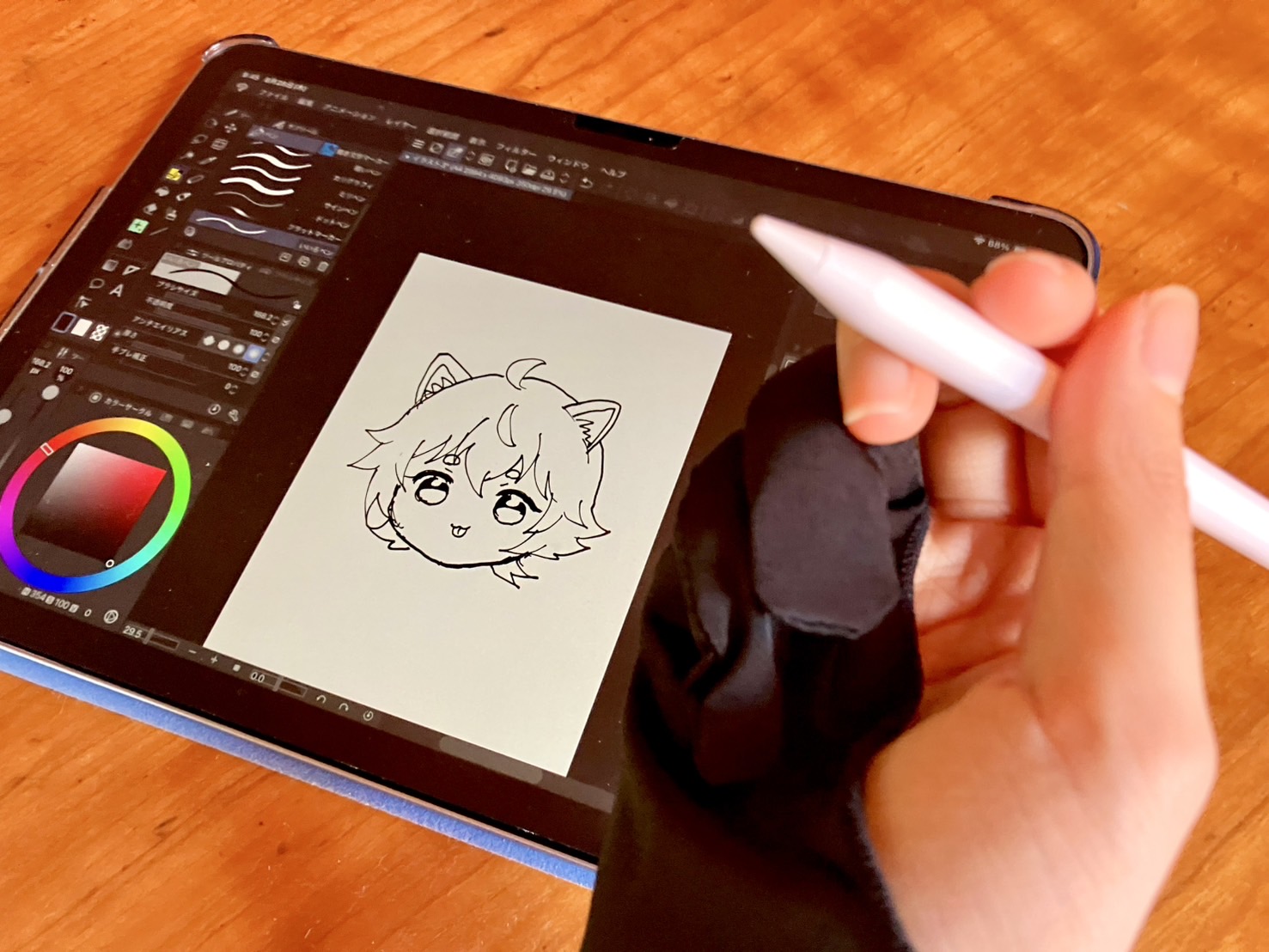 ペン先を動かす時に手の側面が画面に当たってしまい、何度もキャンバスが暴走した。位置を直すのは簡単だけど、繰り返されるとだんだん嫌になってくるんだよな……!