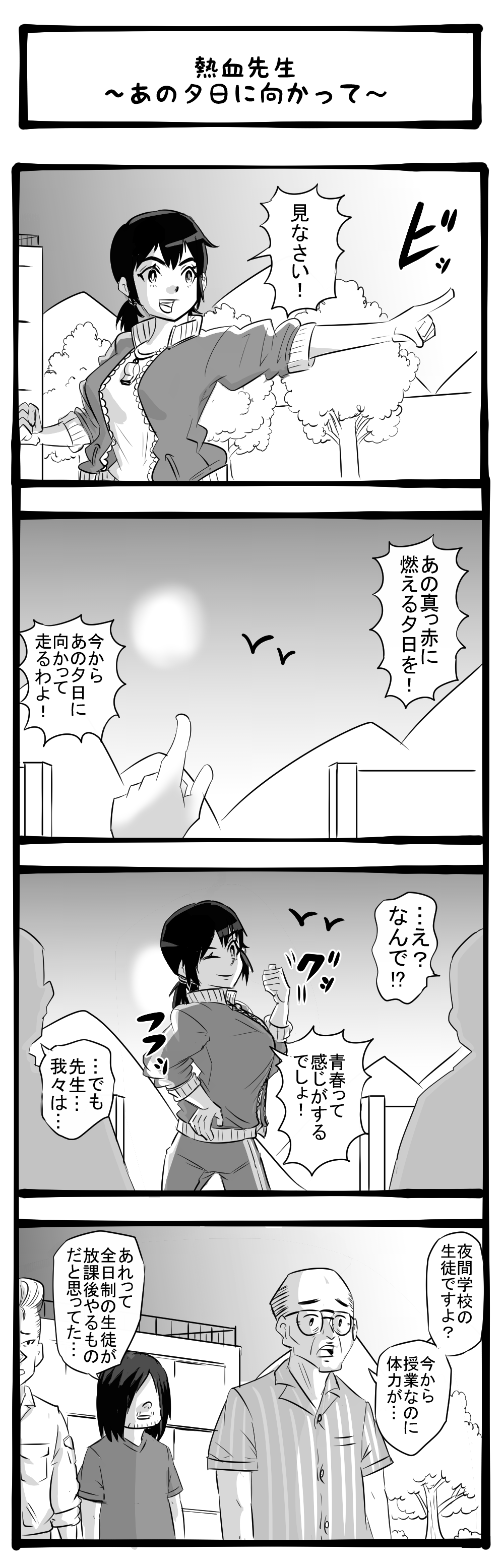 今から始まりなんだよ! 青春を謳歌したい先生! 四コマサボタージュBYD第181回「熱血先生~あの夕日に向かって~」