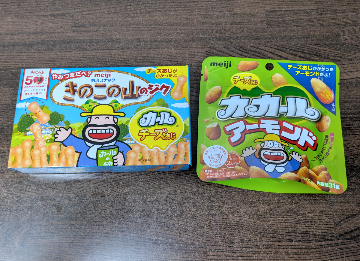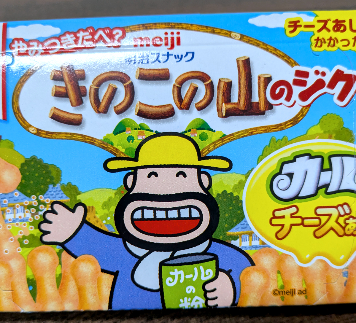 それがコレ。たしかに粉の味はカールな気がするけど、あの半円状のスナックにかけるから美味いのであって、きのこの山にはチョコをつけておけよ! なんで外すんだよッ!!