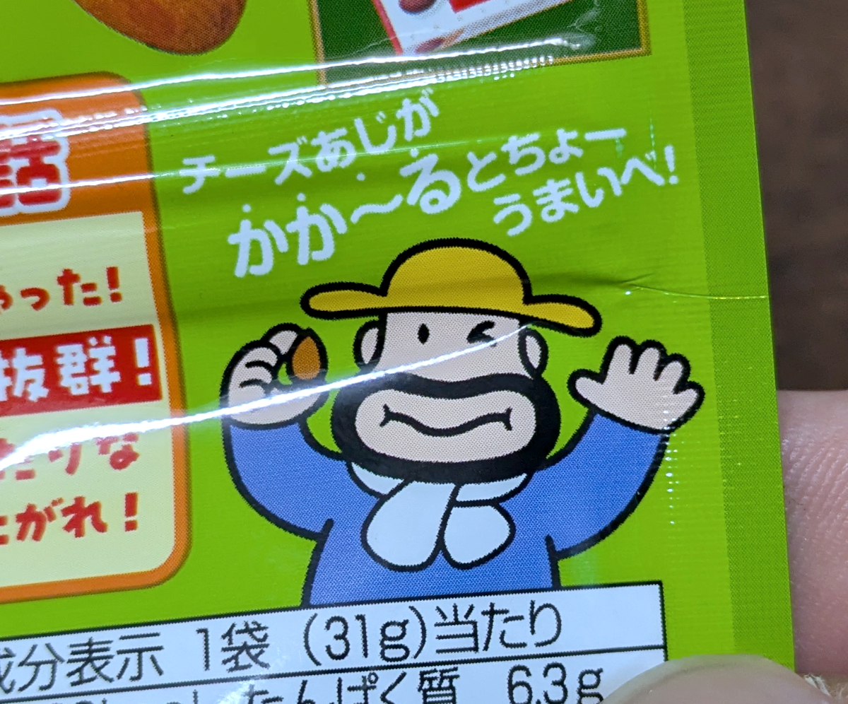 スナックの形状はたしかにカールに近しい。食べてみると、一瞬脳裏にカールがよぎるが、もう少しカールの方が歯ざわりがあって、味が濃かった覚えがある。何より、アイツが描かれていない時点で、私は違うものと認識してしまっている。芸能人本人と良く似たソックリさんくらいの違いはある。