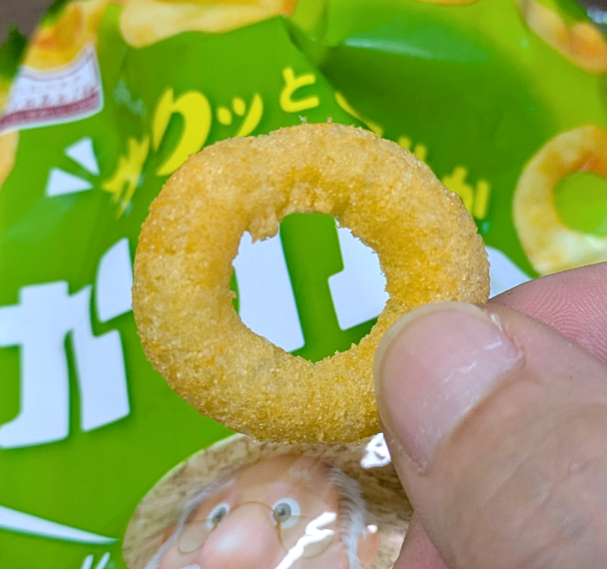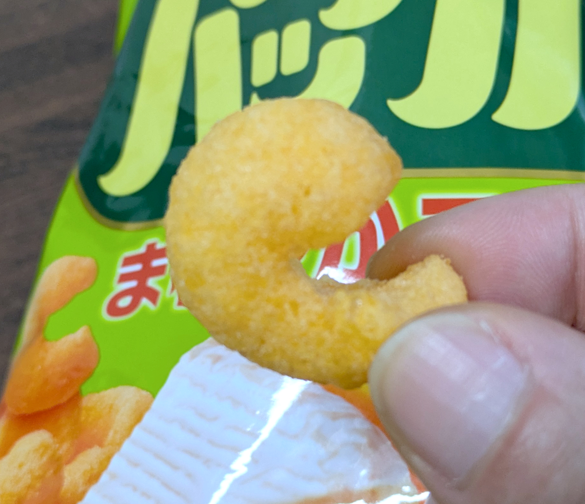 さて、スナック菓子は半円状ではなく、完全な円形だ。そして食感もかる~いパクパクを自称している通りに、パックルよりはるかに軽い。カールとは比べ物にならないくらい軽い。