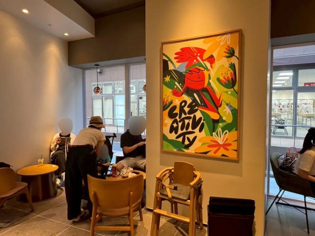 店内をよく見ると、柱や壁にはカラフルなイラストが飾られていて、空間そのものがおしゃれかつポップでかわいい。