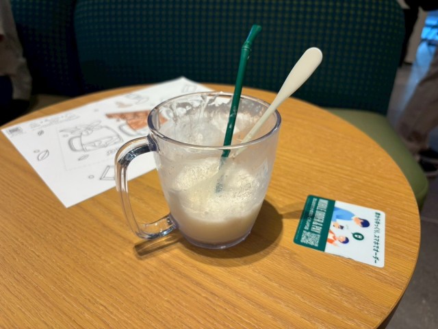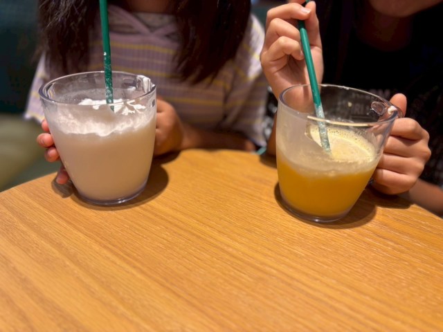 暖かい場所へと、子どもたちが先に退席してしまい、テーブルに残されたのは子ども用フラペチーノと私。