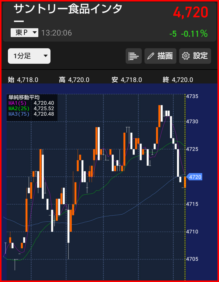 このサントリーのニュースは昨日1日中Xのトレンドに入っていた。荒ぶる調整も1日続いた。それほどセンセーショナルな出来事だったということだと思う。そして、明けた本日、株価は11時30分の時点で4714円。その値動きは安定したようにも見える。