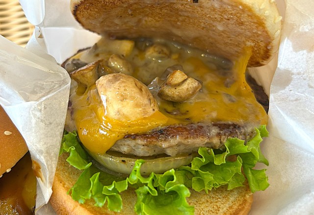 マッシュルームチーズバーガーは同店秋の定番商品らしく5年連続、7回目の登場(2025年現在)になるもよう。まずはポルチーニだが、溢れんばかりのマッシュルームが入っており、値段と見合っていない気がする。