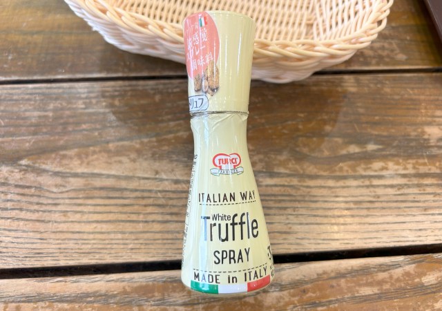 ▼卓上のトリュフスプレー(が置いてある店舗であれば)を振りかけると、さらにトリュフの香りが倍増