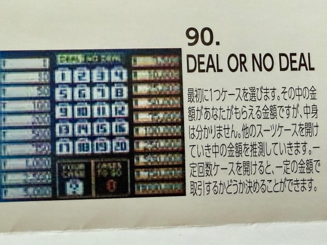 一方で「DEAL OR NO DEAL」のように「最初に1つケースを選びます。その中の金額があなたがもらえる金額ですが……」と永遠に説明が続くタイプは、読むだけで「ちょっともう無理」となってしまう。