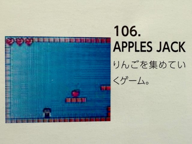 やはりレトロゲームの説明はシンプルなのが1番いい。「APPLES JACK」の「りんごを集めていくゲーム」なんて短かすぎて潔い。ゲームに慣れていない私でも楽しめそうだ。