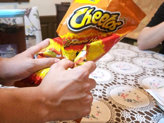 では、さっそく作っていこう。まずはチートスを細かく砕く。