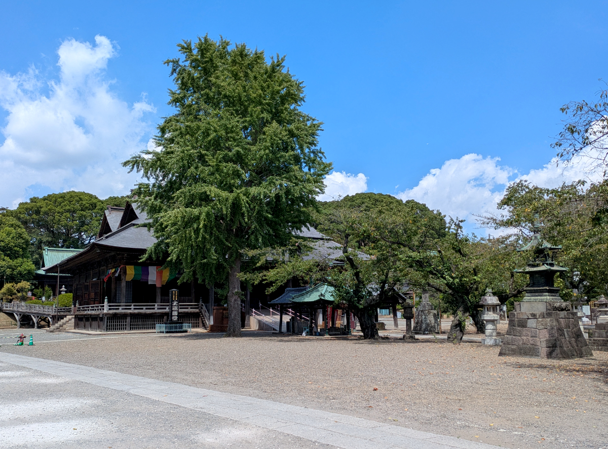 お寺の手前に「額堂」という小さな喫茶があった。おでんと焼きそばの幟(のぼり)が見える。あとで寄ってみよう。この暑さではおでんを食べる気分ではないけど「太鼓焼き」という大判焼きみたいなのが名物らしい。