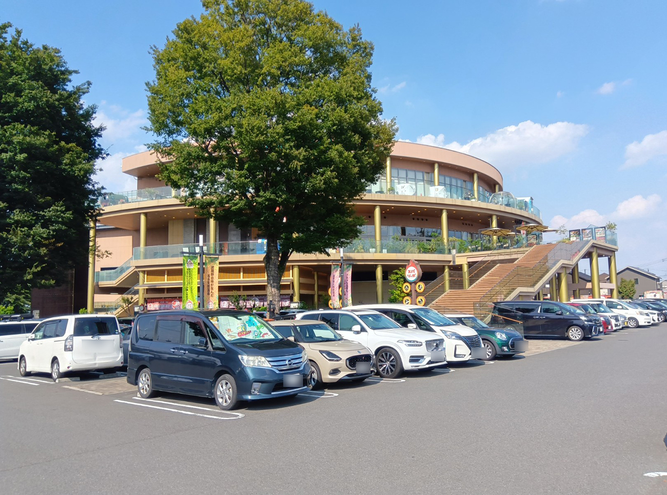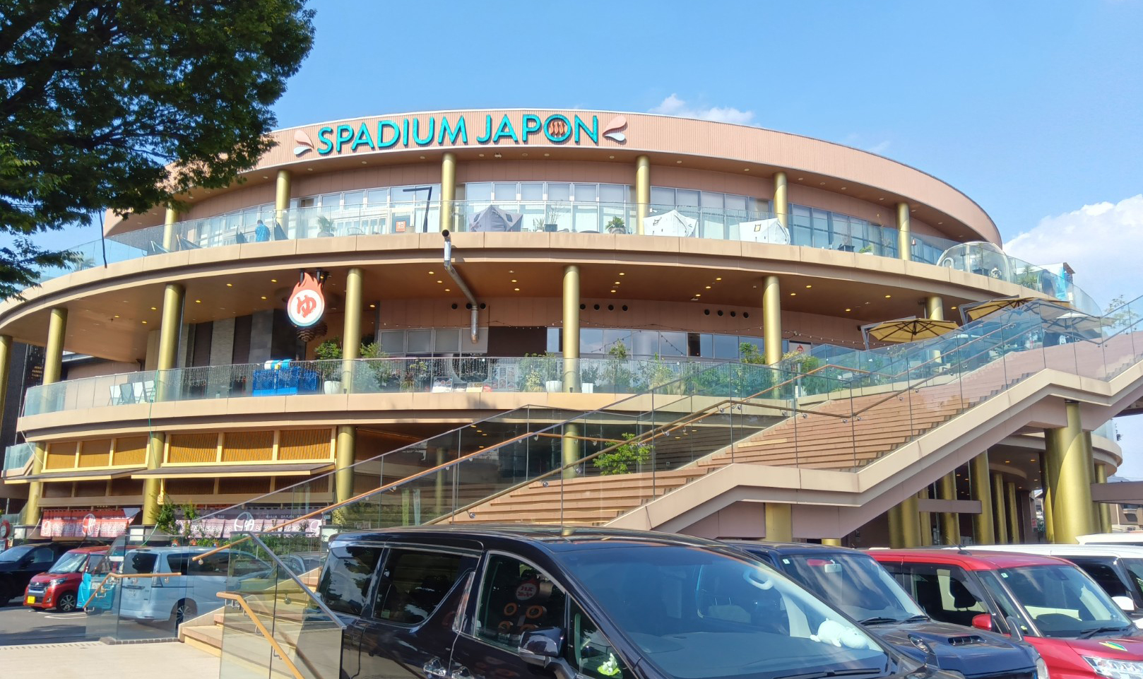 そんなこんなでスパジアムジャポンに到着。遠くからでも分かる広大な敷地に、スタジアムみたいな建物が建つ外観は噂に違わぬ存在感を放っている。デッカイな~!
