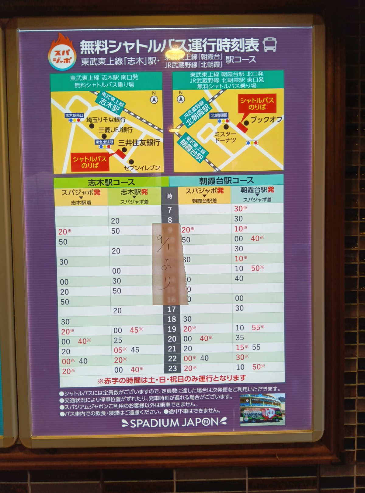 ▼無料シャトルバスの時刻表はこちら