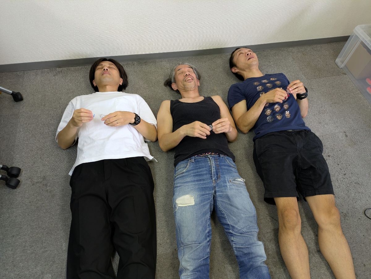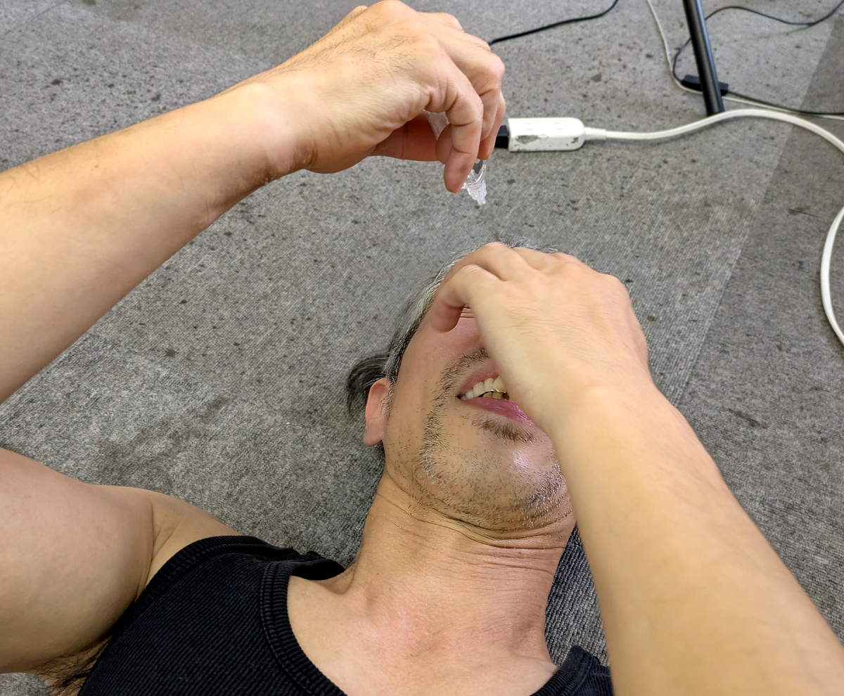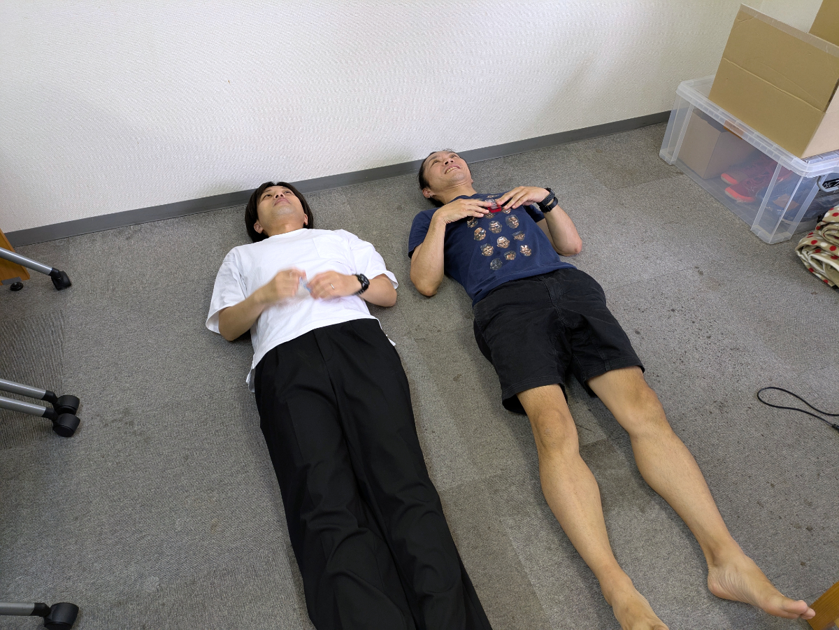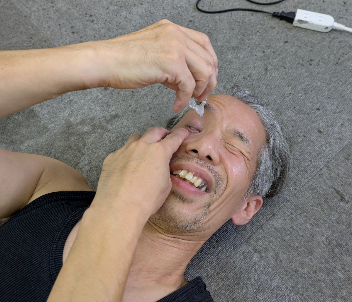 このやり方を同僚に伝えて、3人で仰向けになって目薬さしたら、何だかシュールな画になってしまった……。