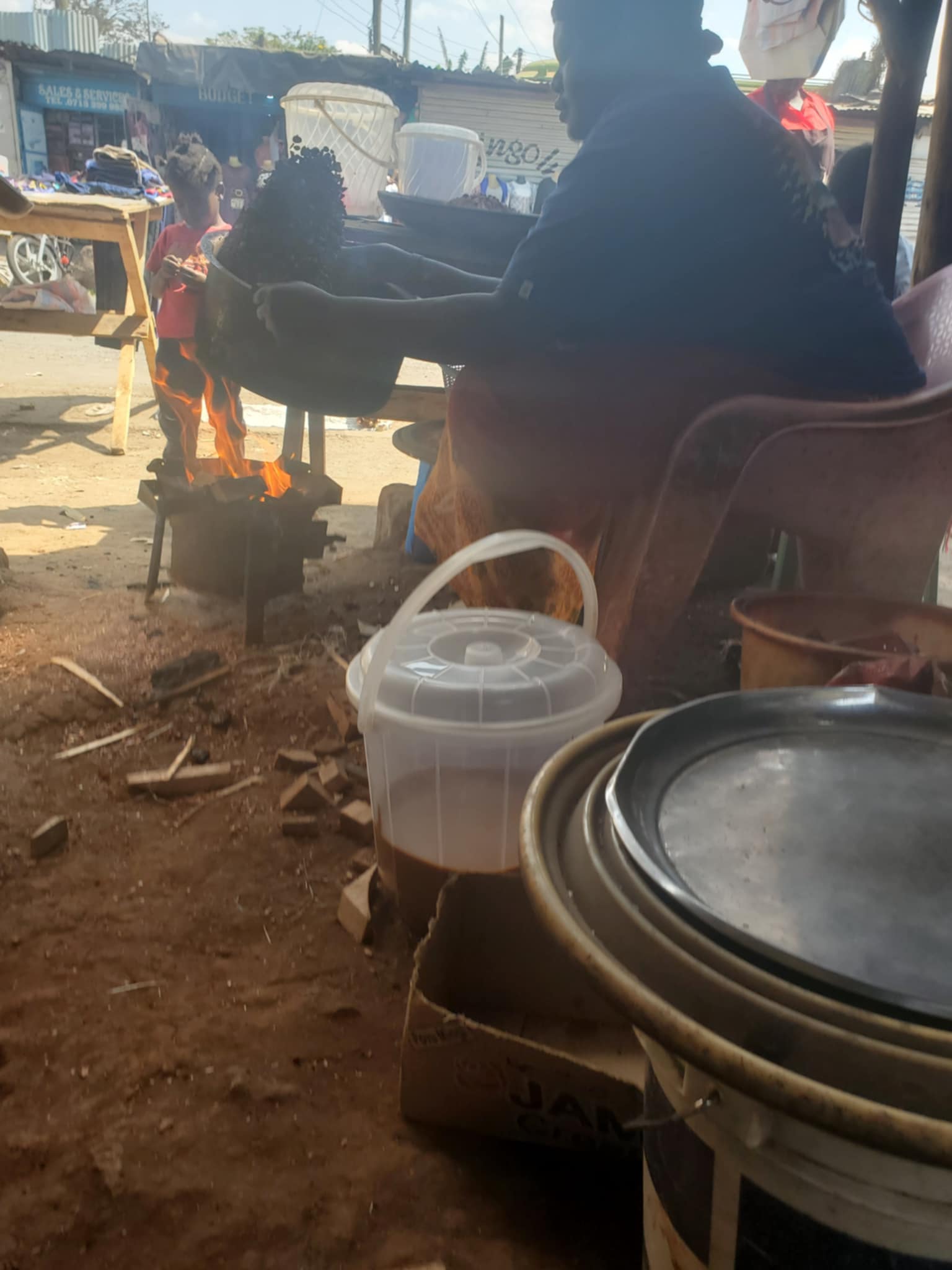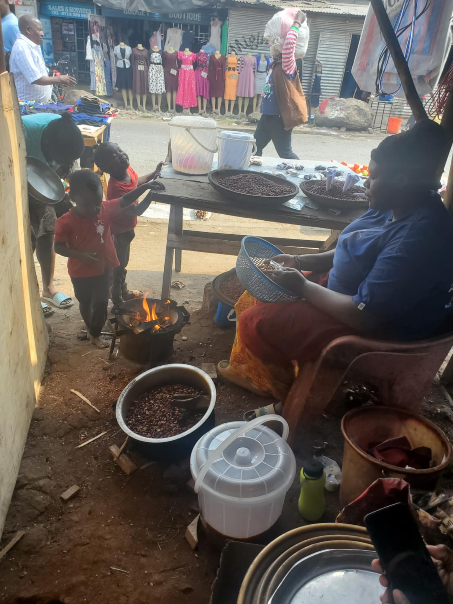 ケニアでは、ピーナッツは畑から直接食べられることもあるし、この女性の店のようにローストして売られることもある。