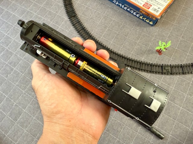 ただし機関車本体に単3電池2本をセットする際は、フタをネジ止めしなければならない。これは激しい動きに耐えるためではなく、安い玩具のフタはネジ止めが標準だからだ。期待しすぎてはいけない。