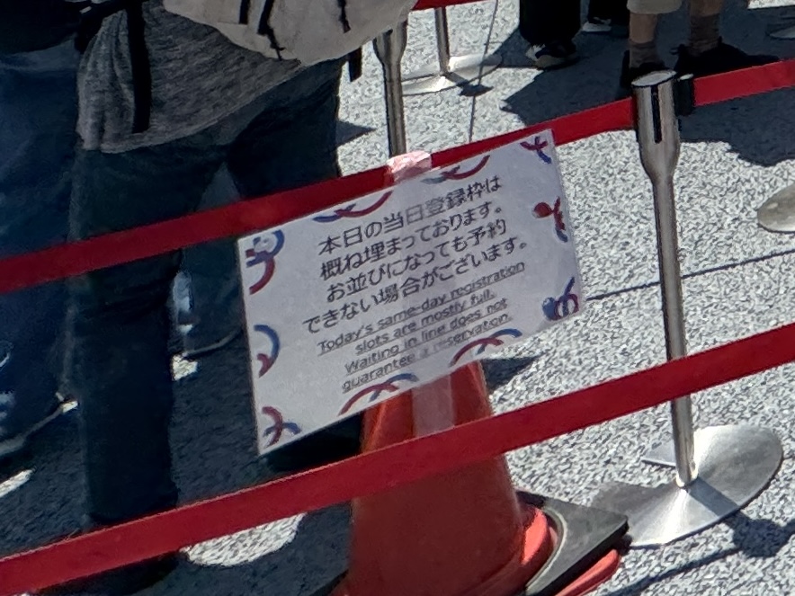 「入場後に現地で予約することが可能だ」と断言したあの男性を思い出し、チョッピリ「いや、ウソじゃ〜ん(笑)」と思いはしたが、かといってネガティブな気持ちは微塵もない。私は彼の言葉に説得され、納得のうえでここを訪れたのだから。