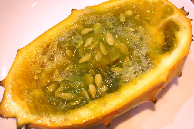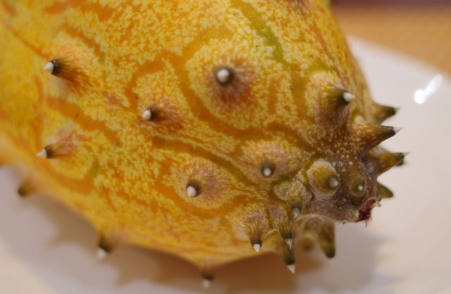 冒頭に書いた通り、ビジュアルが異様で素通りしたくてもできない誘引力を持っている。真っ黄色でぶつぶつしているし、そもそもキワーノという名前の意味も皆目見当がつかない。