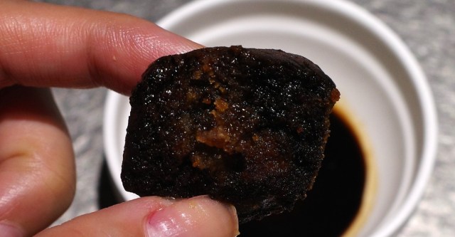 黒糖が十分に染み込んでいてコク深い甘味で、普通に美味しい。……がしかし、やはり「ぬれ」を名乗るのであれば、もう少し濡れ感がほしいところ。
