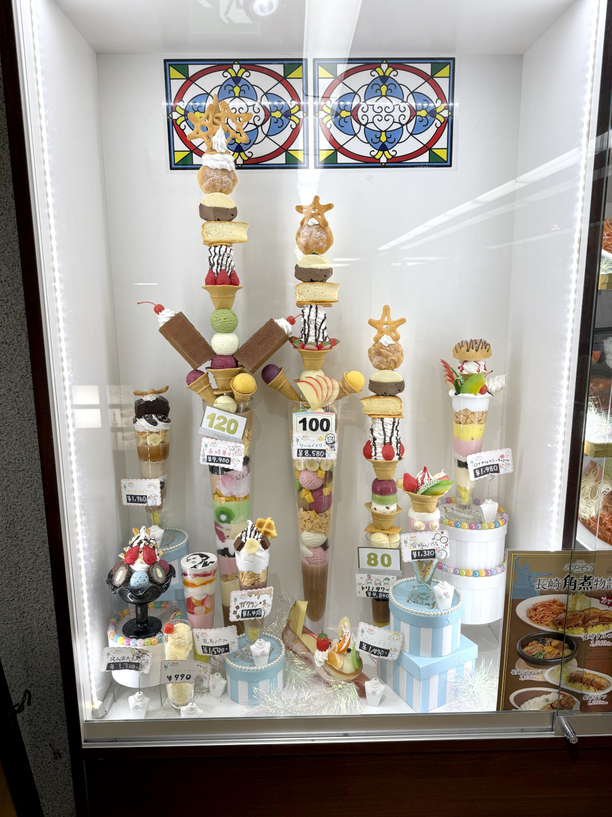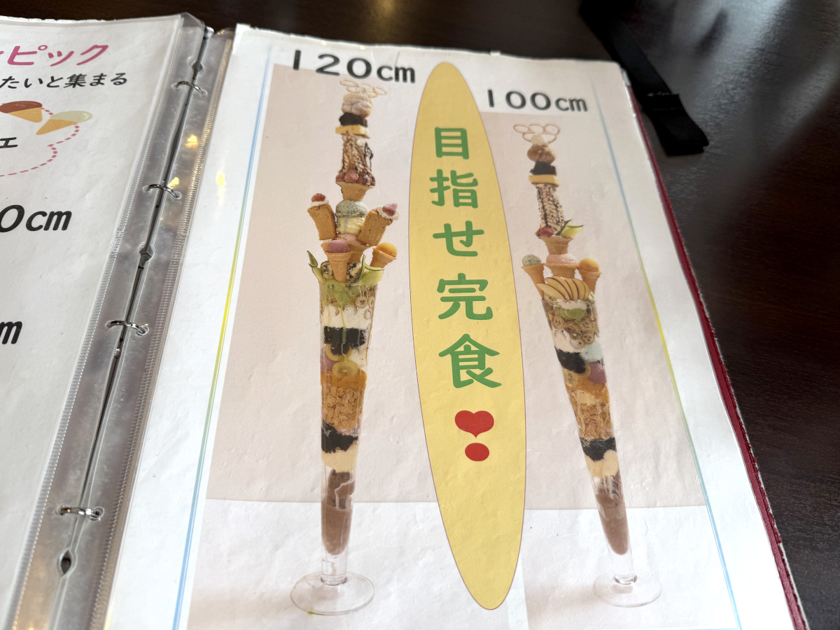 後からわかったことだが、こちらのお店は「オリンピック」というデカ盛りグルメで有名なカフェだそう。全長120センチもある「長崎夢タワー(9900円)」は、これまで何度となくメディアに取り上げられており、実は当サイトでも過去に紹介している。