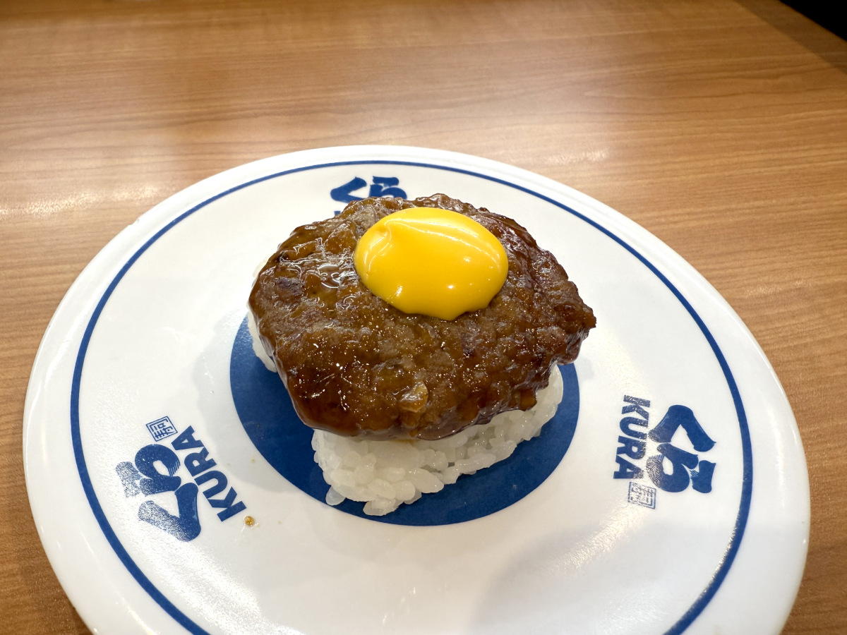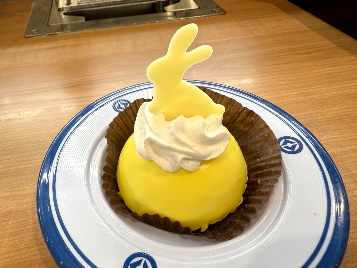 なお、濃厚チーズソースをかけた寿司「月見ハンバーグ(230円)」は、まあそこそこ。逆に「月見ケーキ(430円)」はサクサクとしたクッキー生地の食感がよく、こちらは美味しいスイーツであった。